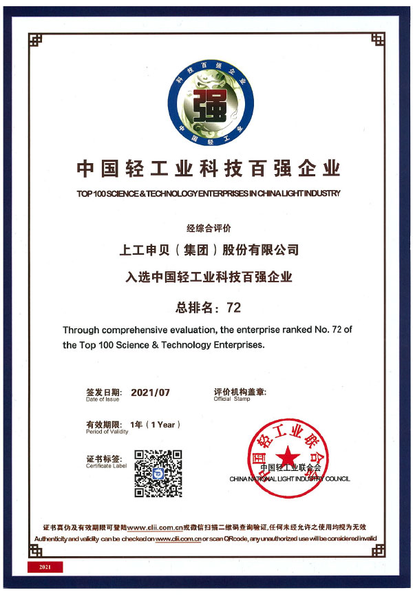 suncitygroup太阳集团(集团)股份有限公司入选中国轻工业科技百强企业(第72名)